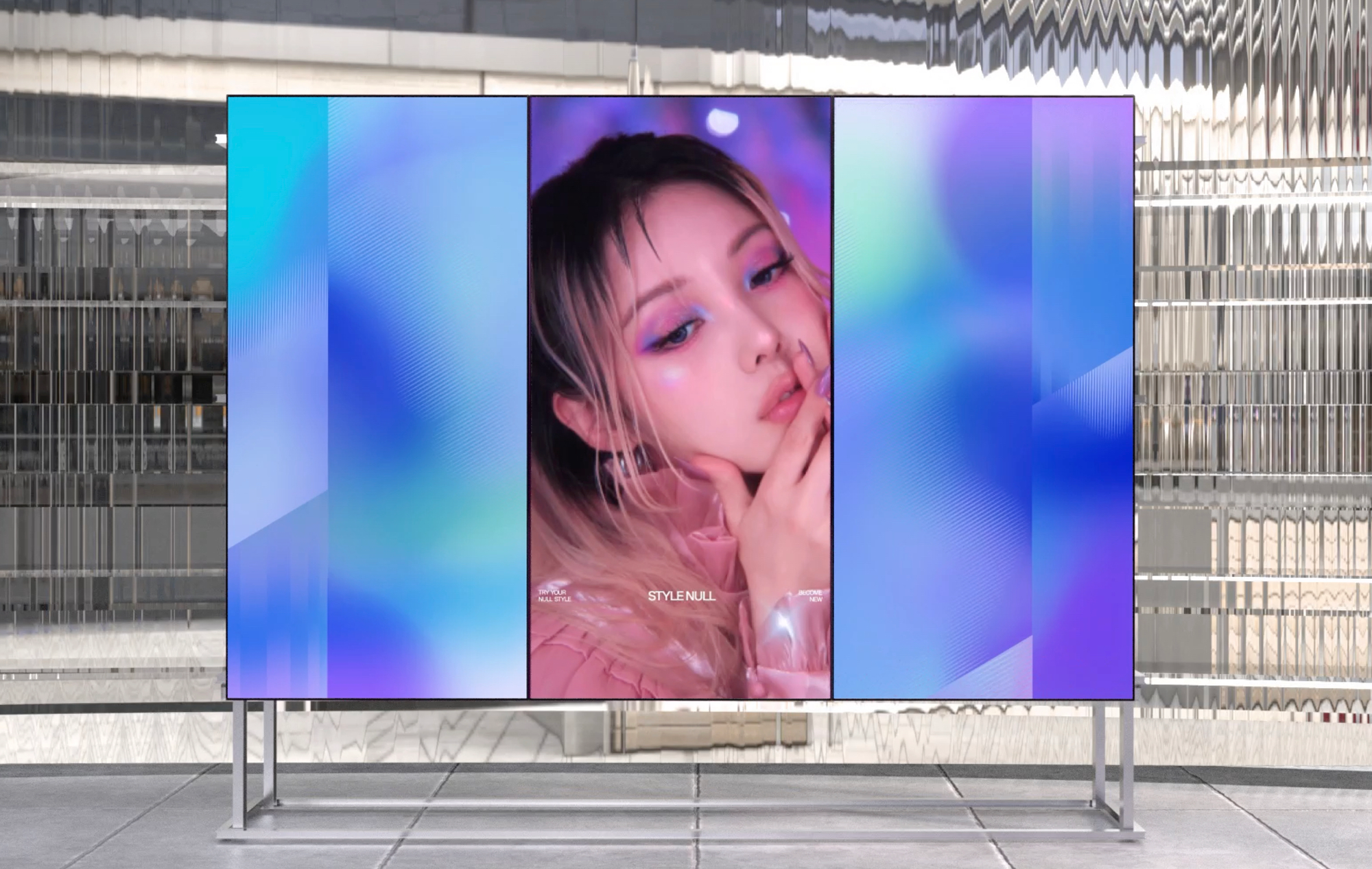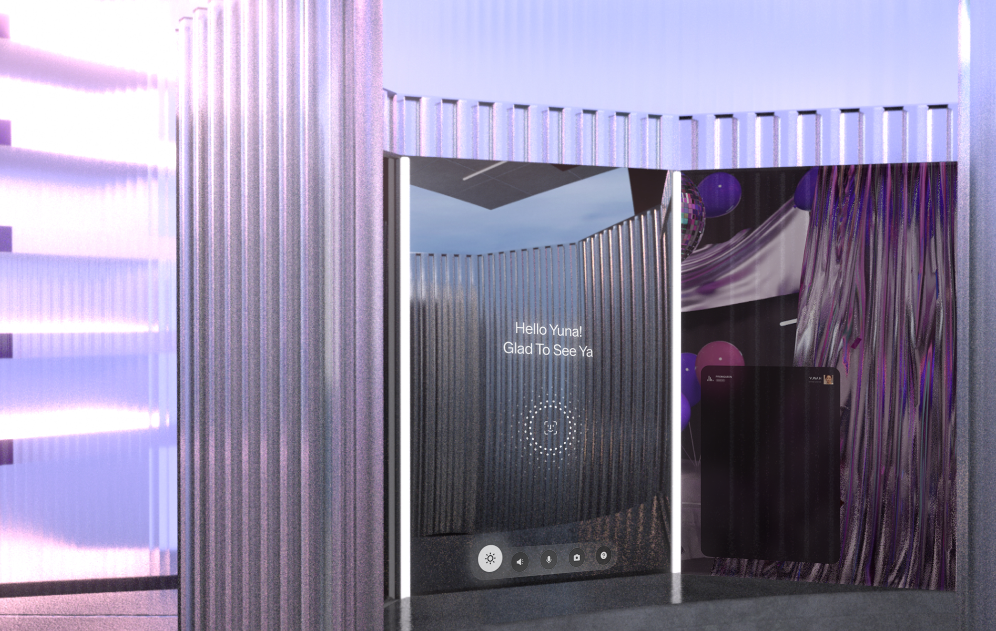 Visual Identity and GUI for Future beauty retail shop concept. Use private AI mirror booth that guide make up experience specifically.
