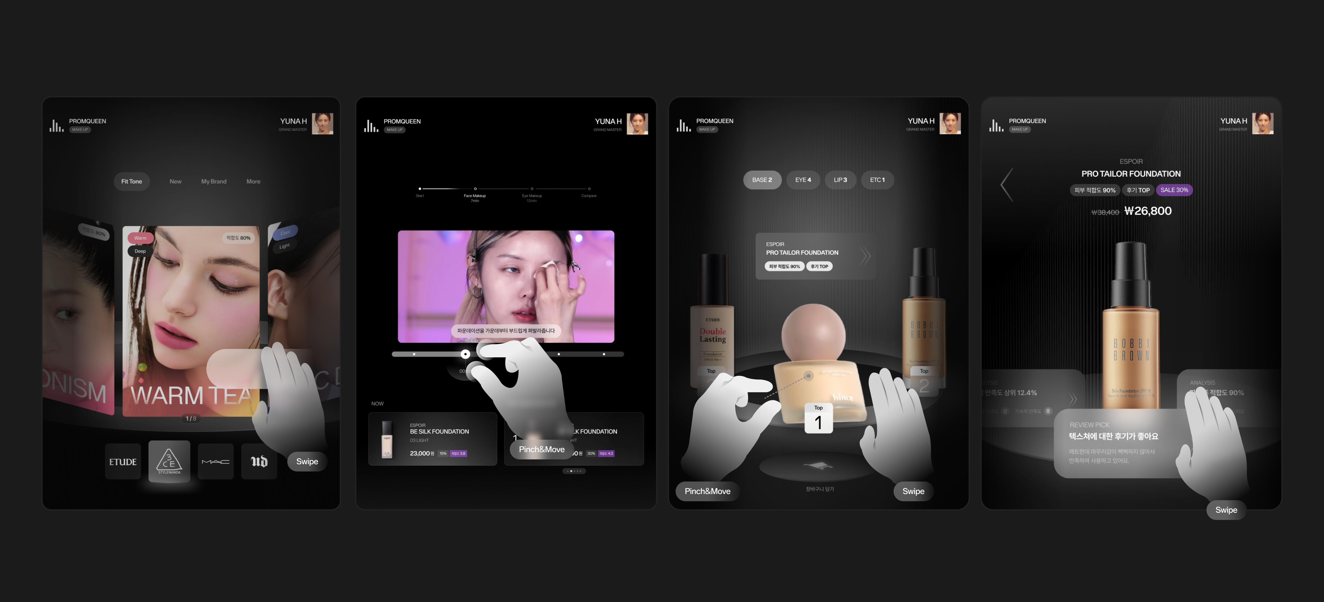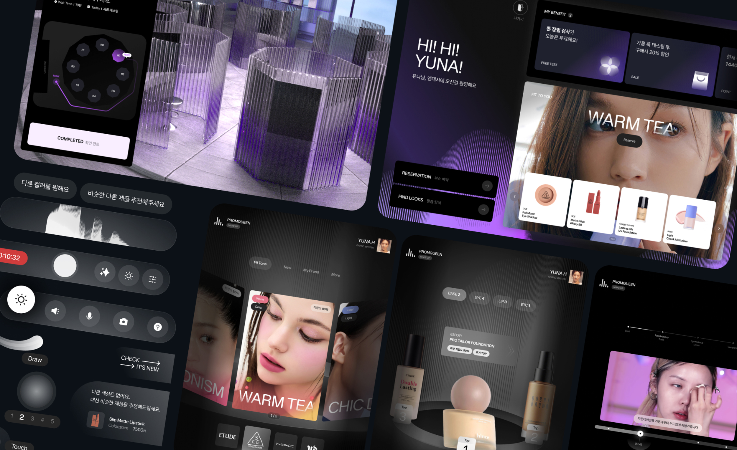 Visual identity and GUI design for future beauty retail space concept.