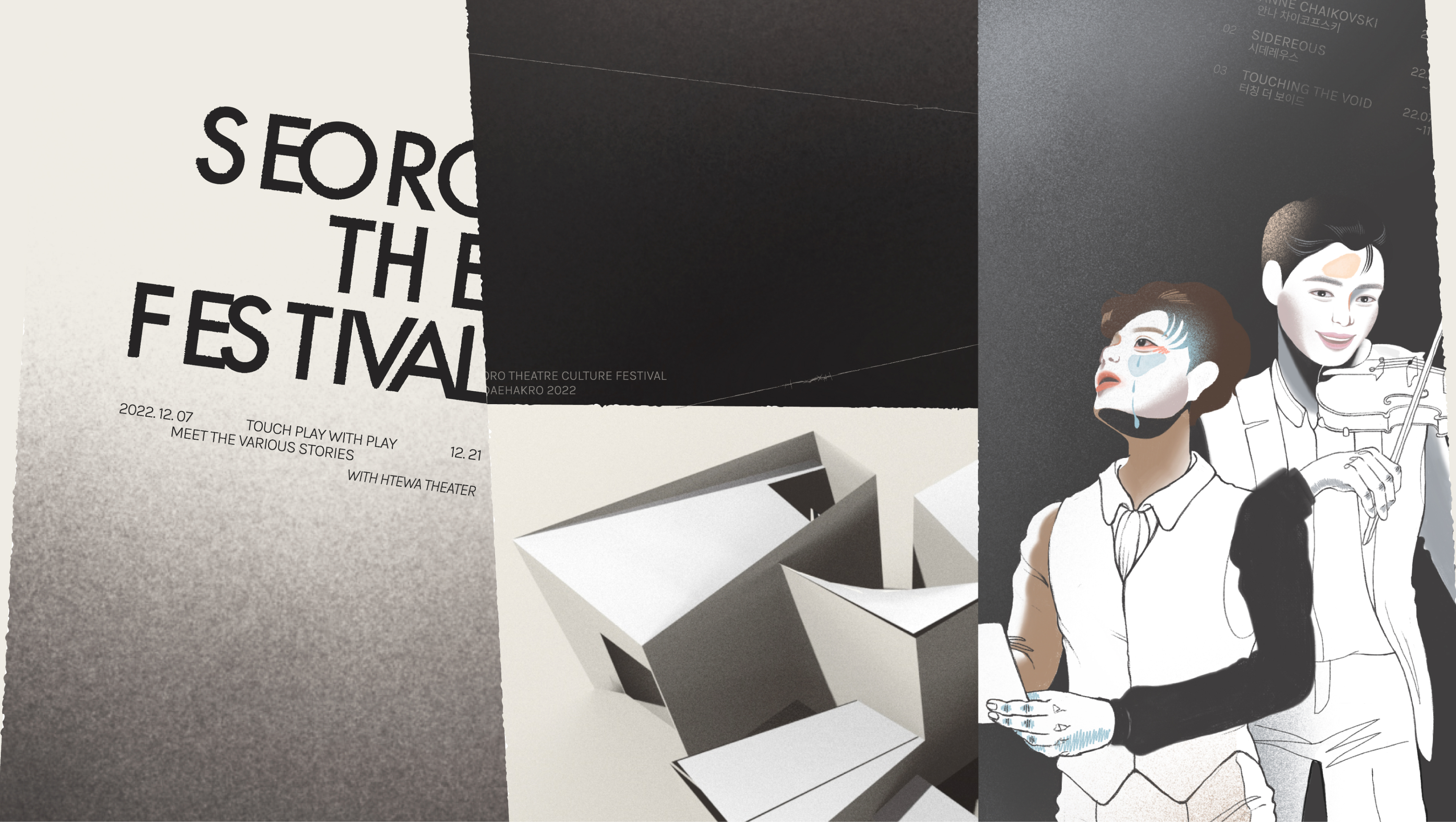 Designed a graphic identity that highlights Daehak-ro’s analog theater vibe by using spotlight motifs and small alley shapes.